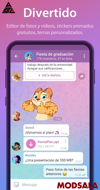 Otra ventaja destacada de Telegram APK es la posibilidad de enviar archivos grandes sin las limitaciones habituales de otras aplicaciones. Los usuarios pueden compartir documentos, imágenes, vídeos y carpetas completas, lo que resulta especialmente útil en entornos laborales y educativos.